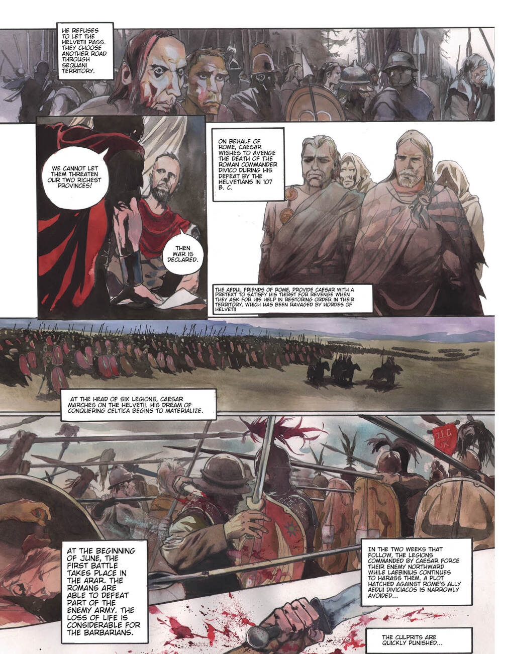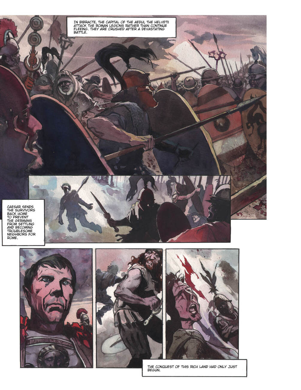 Based on Julius Caesar’s classic and influential Commentarii de Bello Gallico, Conquest: Julius Caesar’s Gallic Wars is one of the best books on Roman history out there today: a 136-page Roman history graphic novel, the first in English to tell the story of Julius Caesar’s conquest of Gaul from 49 B.C. to 52 B.C. in comic book form.